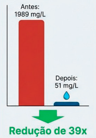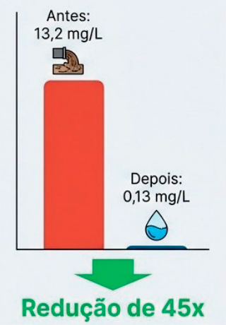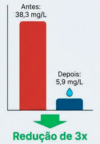 ✅ Eliminação quase instantânea de odores e redução drástica de Cádmio e Sulfeto.