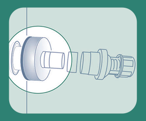4. Desembale e encaixe e pressione levemente a válvula PEEP no elo conector.