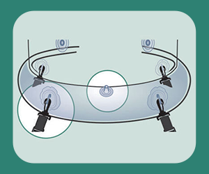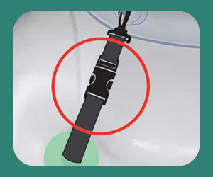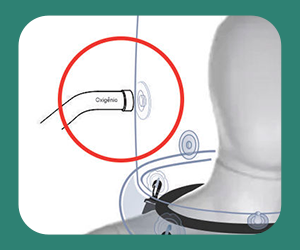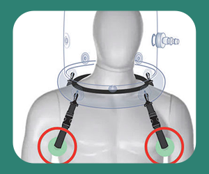 7. Prenda com as presilhas de encaixe e puxe devagar as tiras regulando a anatomia do colarinho Inflável pressionando o colchão do balão VNI 18 sobre os ombros do paciente.